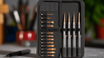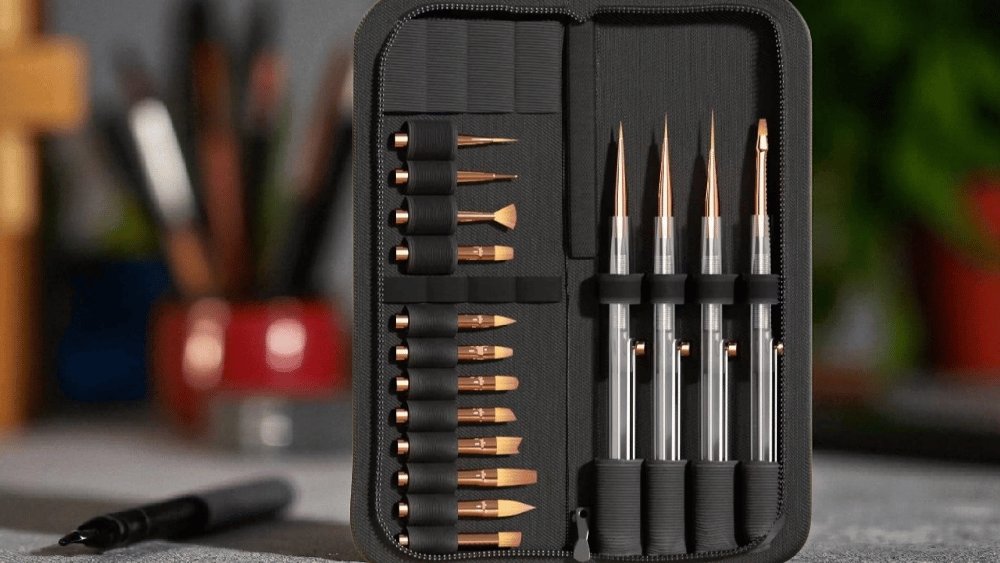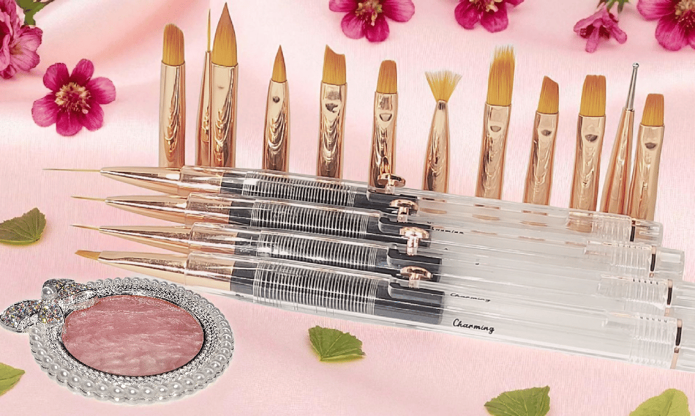Nylon Brush for gel polish nail art. Plastic handle with rose gold button. Retractable and Removable brush. Great for any nail artist and carry along pouch.